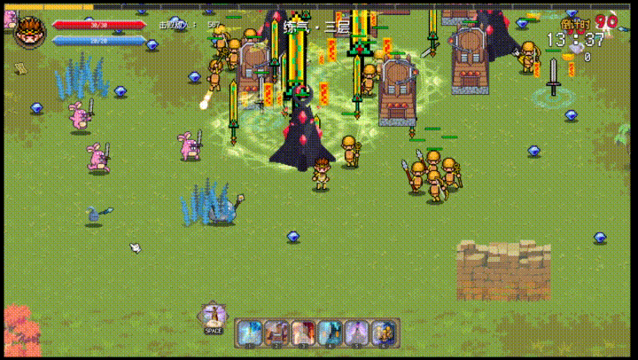 游戏主要分为了幸存者部分和种田部分,幸存者部分有简单、普通、困难、地狱、阴间、真仙、无尽七种模式,五张场景地图,已全部开发完毕;种田部分可以自由开垦、种植灵草、制作工具、修建房屋,正在持续更新完善中,欢迎各位朋友试玩体验。